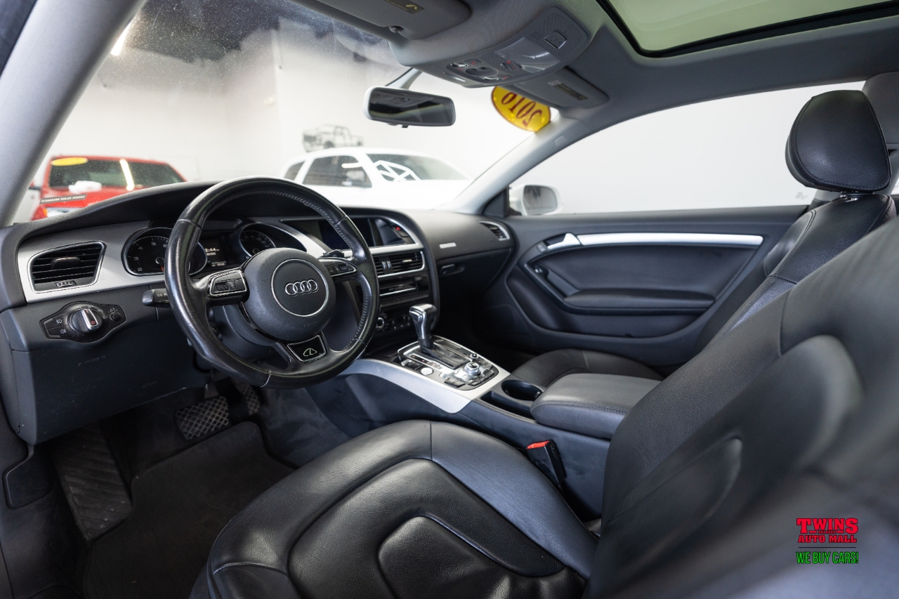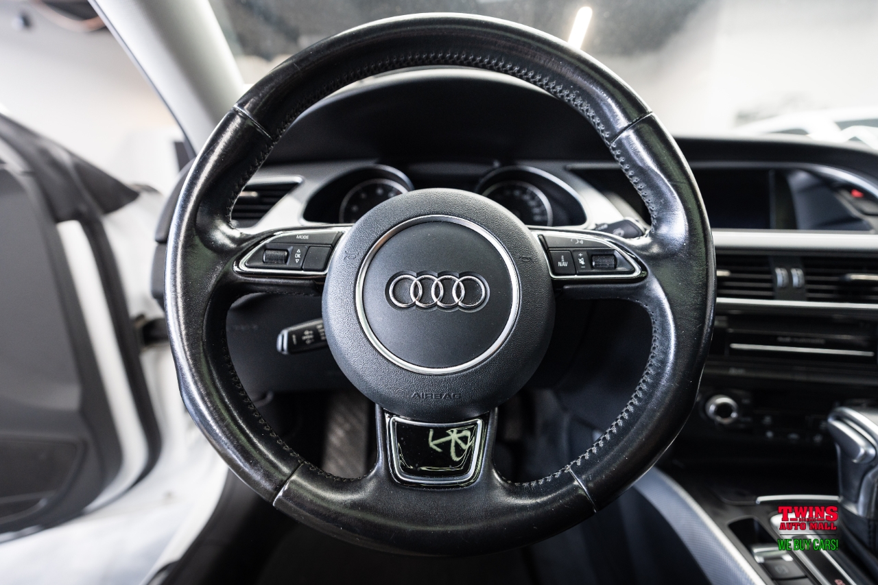 Elegant design meets confident performance in this 2016 Audi A5 2.0T Premium quattro, a luxury coupe that blends sportiness, style, and everyday usability. Finished in white with a black leather interior, its sleek, timeless, and unmistakably Audi.Powered by a 2.0L turbocharged 4-cylinder engine paired with an automatic transmission and quattro all-wheel drive, the A5 delivers smooth acceleration, excellent traction, and balanced handling in all conditions. With 103,594 miles, its been well cared for and performs as strong as it looks.Inside, the Premium trim offers a refined driving experience with leather upholstery, power-adjustable heated seats, premium audio, and Audis MMI infotainment system. Every surface and detail reflects Audis craftsmanship and attention to detail.Stylish, capable, and refined this 2016 Audi A5 2.0T quattro delivers the comfort of a luxury coupe with the driving dynamics of a true sports car.Stock #032710 VIN WAUD2AFR1GA032710.Come see it in person and experience the perfect balance of performance and sophistication.