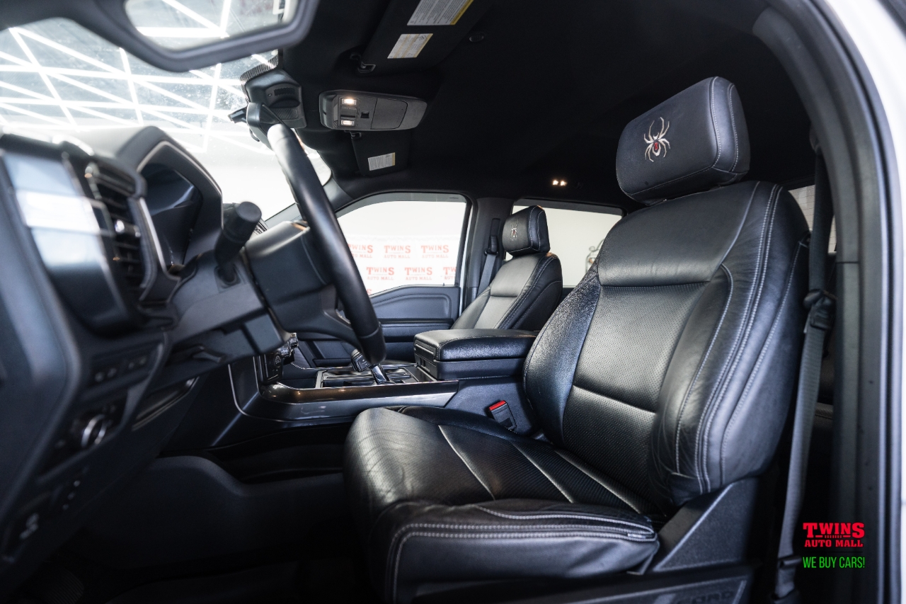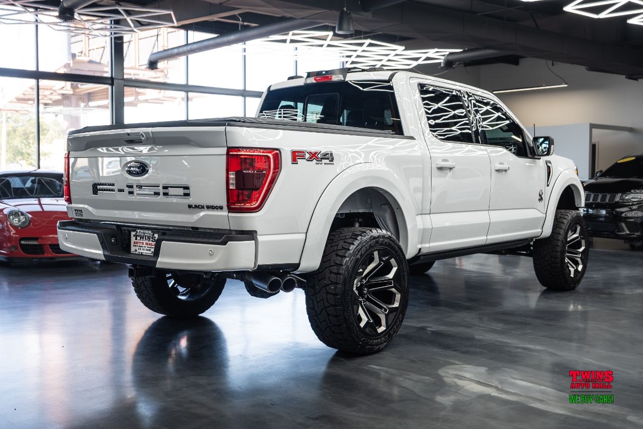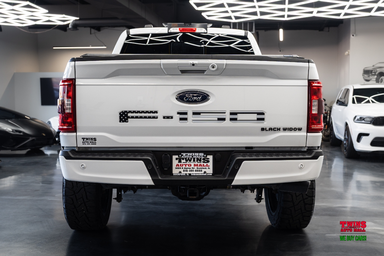 Aggressive, lifted, and luxurious this 2021 Ford F-150 Black Widow XL SuperCrew 4WD is a rare, performance-built truck straight from Black Widow by SCA Performance, engineered for both off-road strength and show-stopping style. Finished in white with a black leather interior, its as refined as it is rugged, with only 50,629 miles.Under the hood, the 5.0L V8 engine pairs with an automatic transmission and 4-wheel drive, delivering powerful performance, smooth shifts, and legendary Ford dependability. But what truly sets this truck apart is the Black Widow package, built in collaboration with Fox Factory for premium suspension and styling upgrades.Black Widow Edition Upgrades Include:6-inch lift system engineered by SCA Performance for commanding stance and off-road capabilityFox 2.0 performance shocks for superior ride quality and control20-inch Black Widow wheels wrapped in 35-inch all-terrain tires for aggressive grip and styleCustom fender flares and Black Widow badging throughout the exteriorPaint-matched bumpers, hood vents, and Black Widow grille for a sleek, cohesive lookUpgraded leather interior with Black Widow embroidered headrests, red stitching, and custom gauge clusterPower side steps, LED lighting accents, and performance exhaust with black tips for added flairThis is more than a lifted F-150 its a professionally engineered performance truck with factory-level quality and a premium finish from top to bottom.Stock #D12766 VIN 1FTFW1E58MFD12766.Come see it in person and experience the perfect blend of luxury, power, and presence in this 2021 Ford F-150 Black Widow.