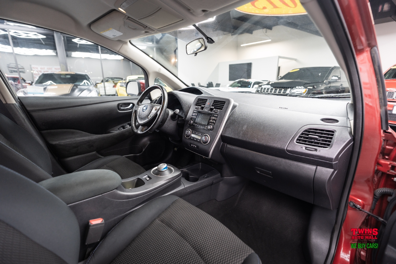 This 2015 Nissan Leaf S in red with a black cloth interior is an efficient, quiet city car that cuts running costs and simplifies daily driving. Its all-electric, so youll get instant torque off the line and low maintenance compared with a gas vehicle.The Leaf uses front-wheel drive and an automatic-style single-speed setup for smooth, predictable acceleration. Charging is easy at home or on public chargers, making it ideal if you do mostly city or suburban driving and want to avoid frequent stops at the pump.Inside is a practical cabin that seats five. The cloth seats are durable and the rear seats fold to expand cargo space for groceries, gear, or weekend bags. The compact footprint makes parking and maneuvering simple in tight spots.With just 39,300 miles, this Leaf has plenty of useful life left. Battery range depends on age and condition, and we can provide any available service or battery health records on request. If you want a low-cost daily commuter or a second city car, this Leaf is a smart choice.VIN: 1N4AZ0CP0FC327580. Stock #: 327580. Schedule a test drive to see how it fits your routine.