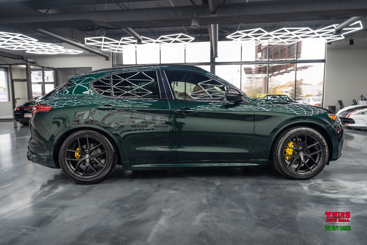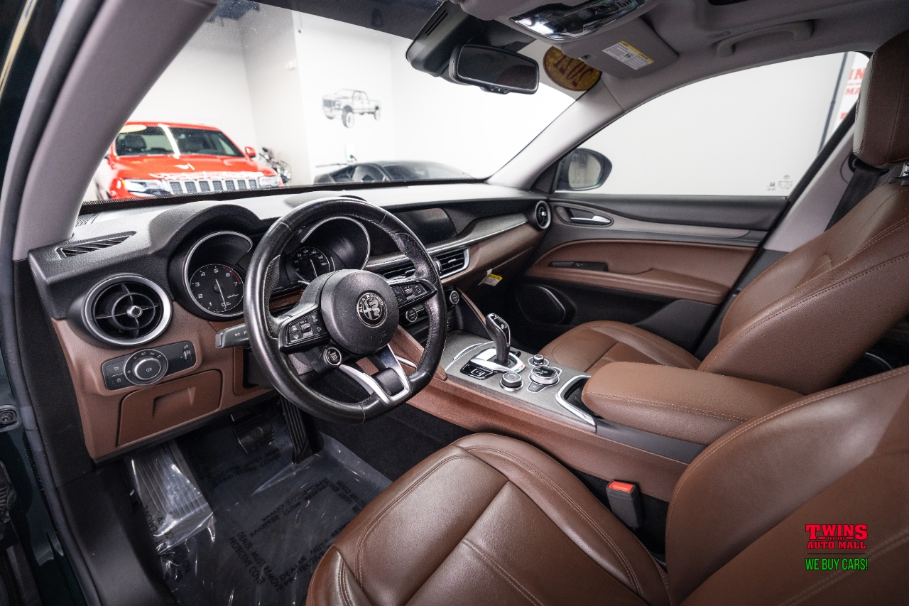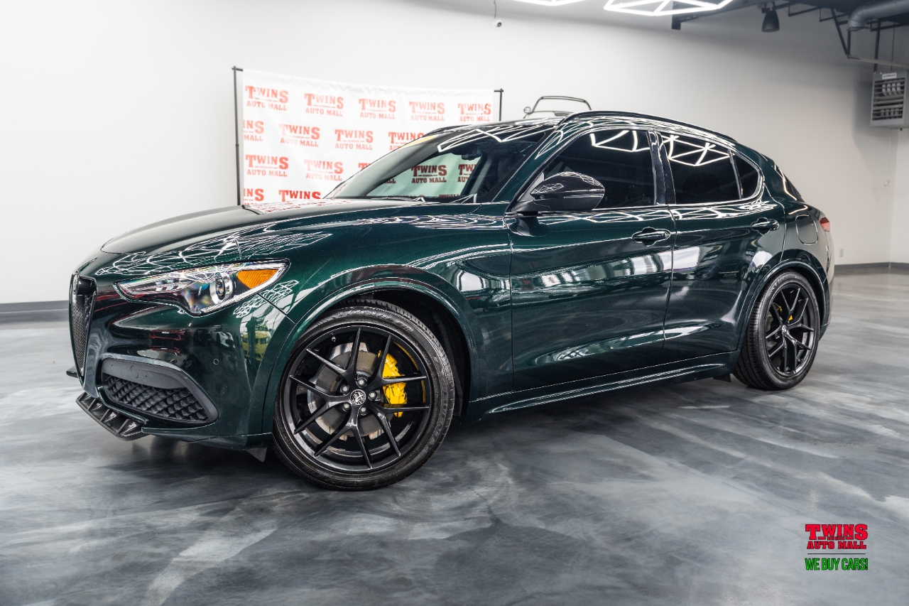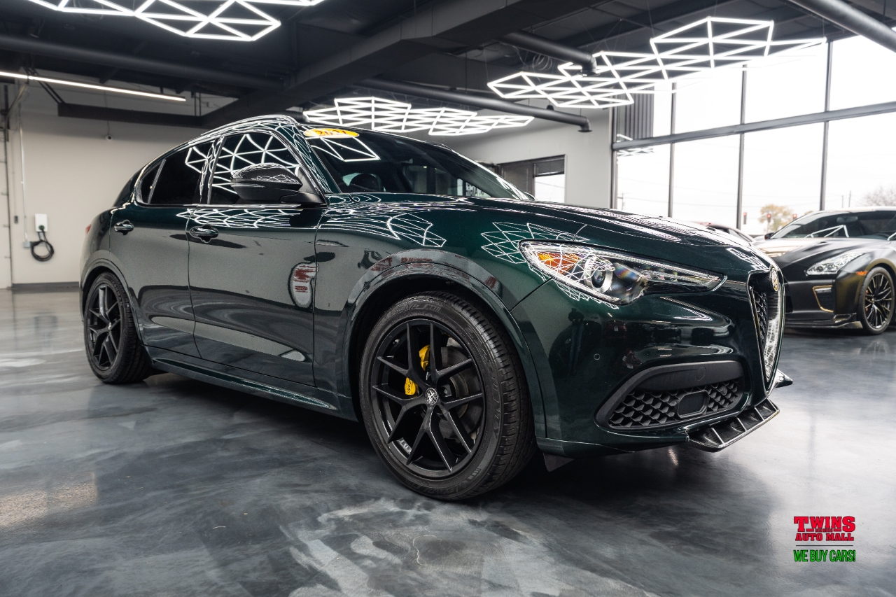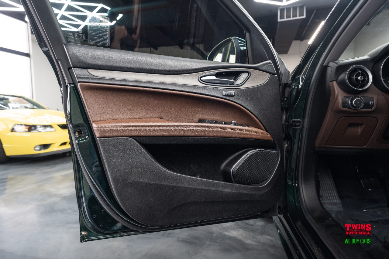 This 2021 Alfa Romeo Stelvio Quadrifoglio brings Italian style and sharp handling in a compact luxury SUV package. It wears a striking green exterior and a brown leather interior that gives the cabin a warm, premium feel.Under the hood is a 2.0L L4 DOHC 16V engine mated to an automatic transmission and all-wheel drive. That setup gives you confident traction in rain or snow and a sporty, engaged driving feel when you push it on twisty roads.The cabin seats five and puts comfort up front and in the rear. Leather upholstery adds a premium touch and cleans up easily after daily use. Cargo space is practical for weekend bags or a week of groceries.With just 43,195 miles, this Stelvio is lightly used for its model year. Its a great fit if you want a sporty daily driver with luxury touches, or a weekend car that still works for family needs. Check service history for maintenance details and recent items.VIN: ZASPAKBN7M7D00476. Stock #: D00476.