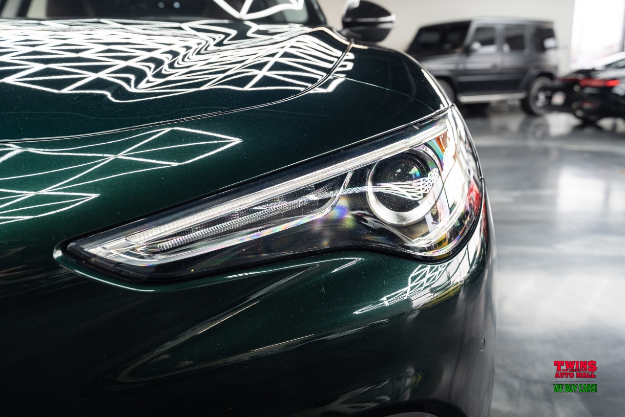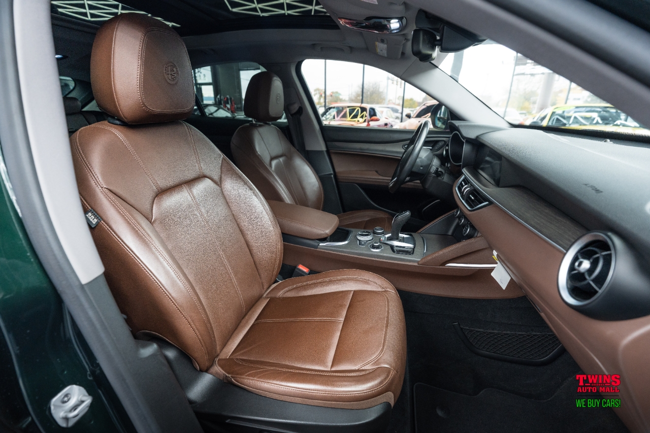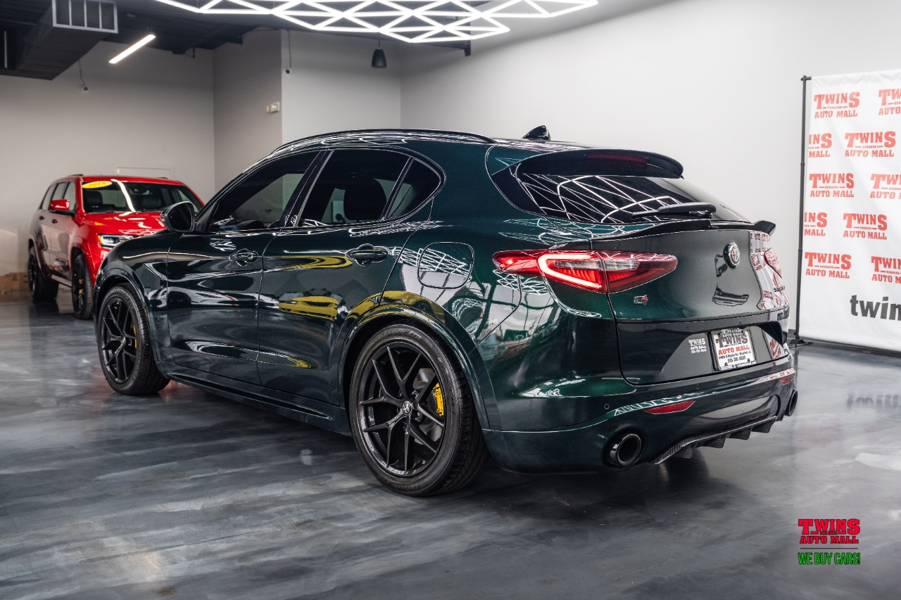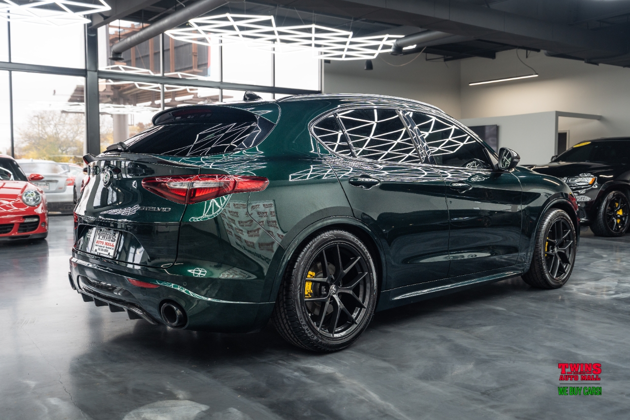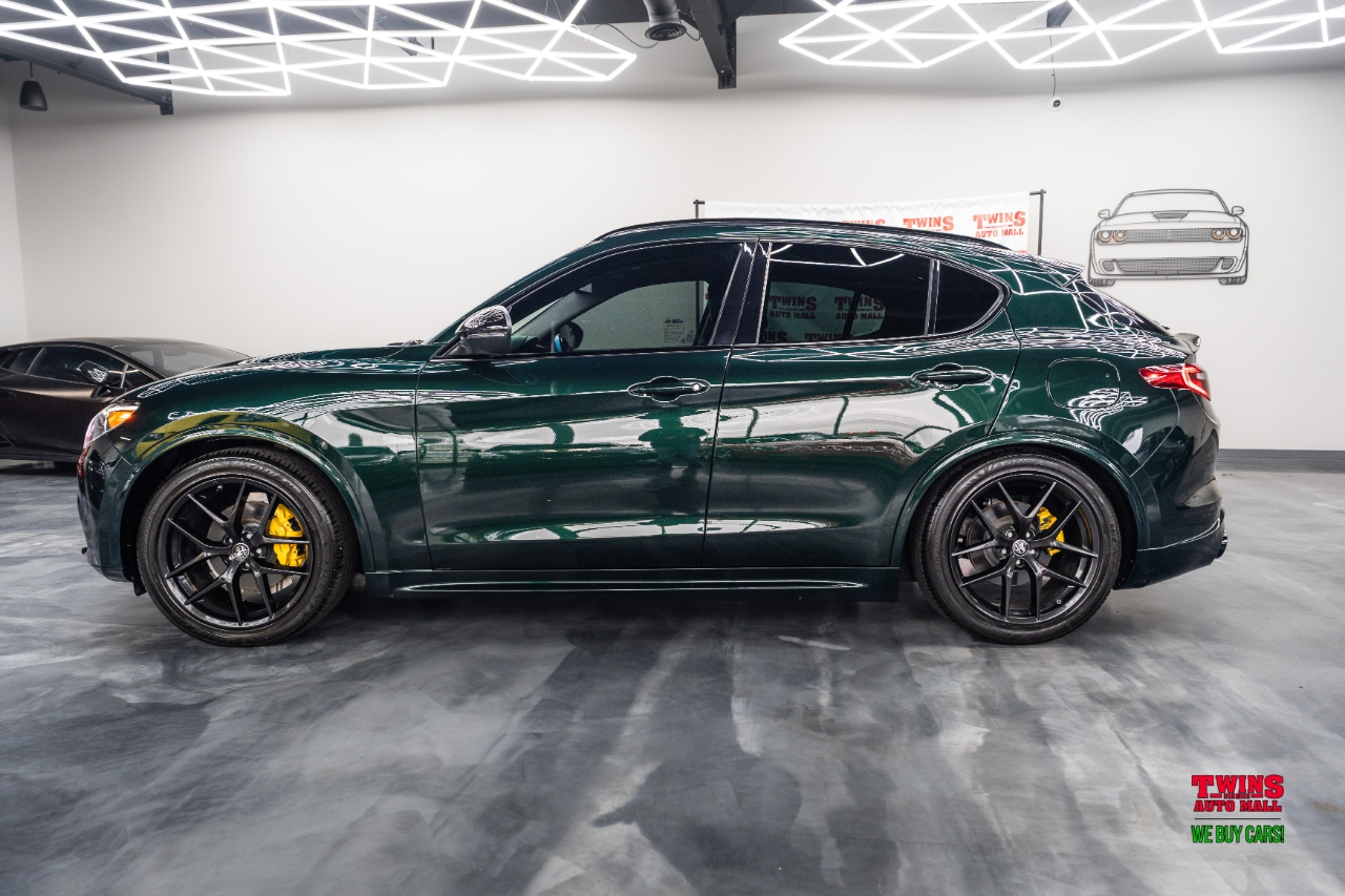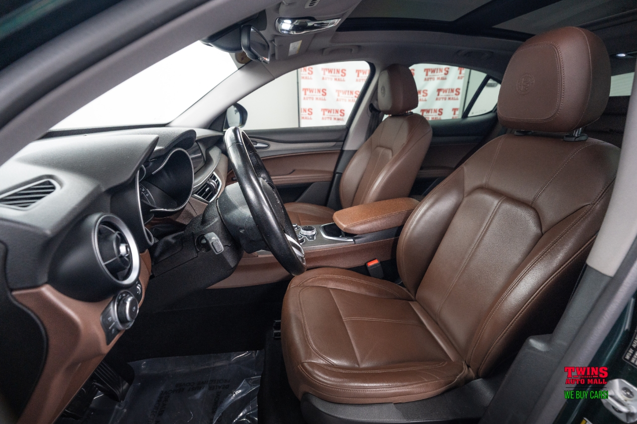 This 2021 Alfa Romeo Stelvio Quadrifoglio brings Italian style and sharp handling in a compact luxury SUV package. It wears a striking green exterior and a brown leather interior that gives the cabin a warm, premium feel.Under the hood is a 2.0L L4 DOHC 16V engine mated to an automatic transmission and all-wheel drive. That setup gives you confident traction in rain or snow and a sporty, engaged driving feel when you push it on twisty roads.The cabin seats five and puts comfort up front and in the rear. Leather upholstery adds a premium touch and cleans up easily after daily use. Cargo space is practical for weekend bags or a week of groceries.With just 43,195 miles, this Stelvio is lightly used for its model year. Its a great fit if you want a sporty daily driver with luxury touches, or a weekend car that still works for family needs. Check service history for maintenance details and recent items.VIN: ZASPAKBN7M7D00476. Stock #: D00476.