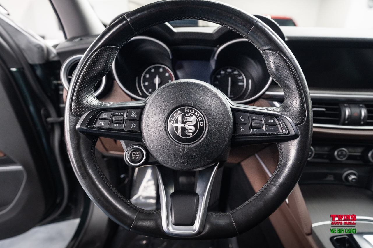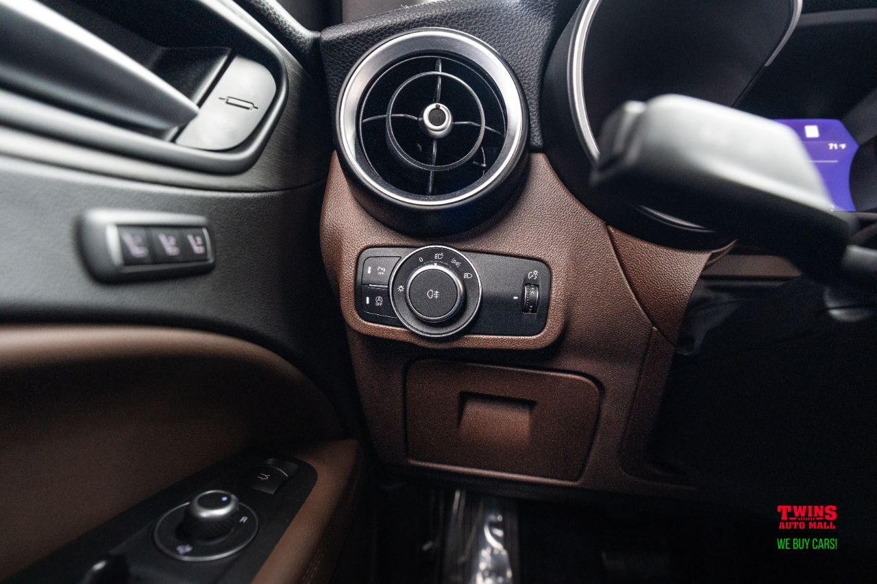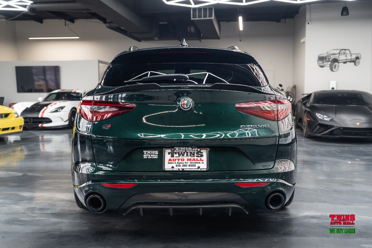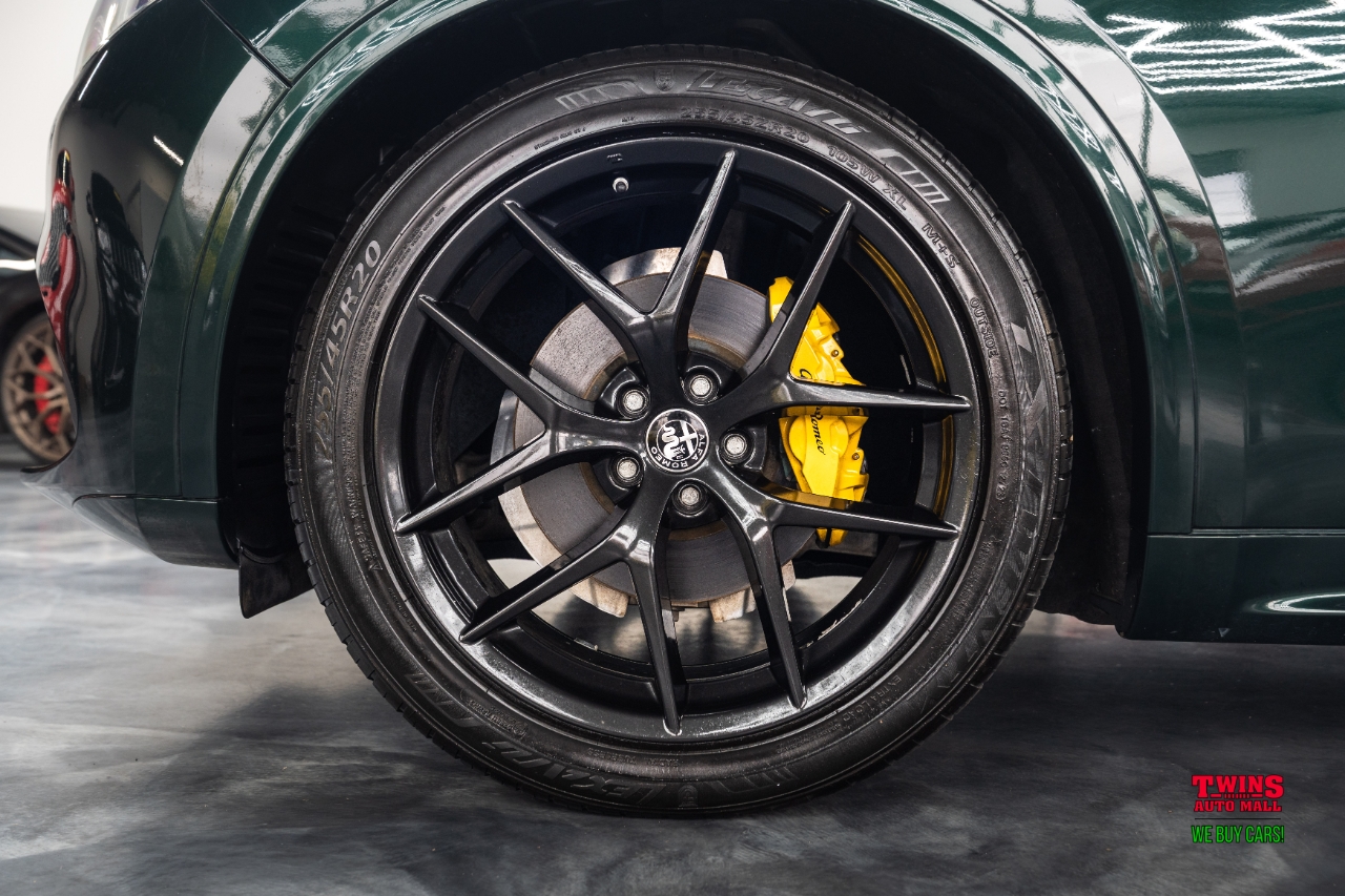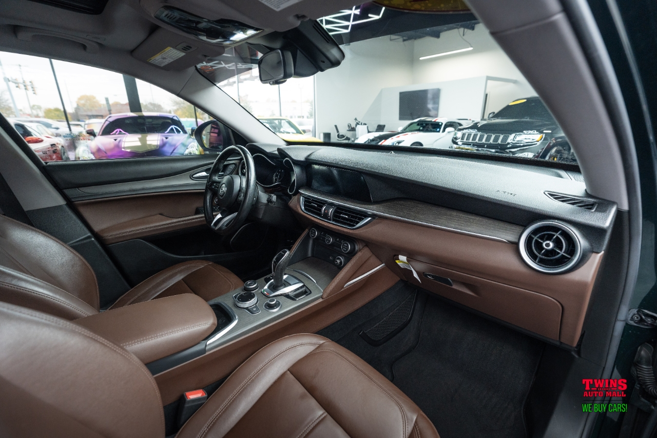 This 2021 Alfa Romeo Stelvio Quadrifoglio brings Italian style and sharp handling in a compact luxury SUV package. It wears a striking green exterior and a brown leather interior that gives the cabin a warm, premium feel.Under the hood is a 2.0L L4 DOHC 16V engine mated to an automatic transmission and all-wheel drive. That setup gives you confident traction in rain or snow and a sporty, engaged driving feel when you push it on twisty roads.The cabin seats five and puts comfort up front and in the rear. Leather upholstery adds a premium touch and cleans up easily after daily use. Cargo space is practical for weekend bags or a week of groceries.With just 43,195 miles, this Stelvio is lightly used for its model year. Its a great fit if you want a sporty daily driver with luxury touches, or a weekend car that still works for family needs. Check service history for maintenance details and recent items.VIN: ZASPAKBN7M7D00476. Stock #: D00476.